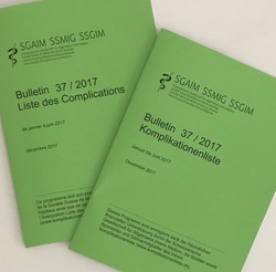 L'association de la liste des complications a publié son bulletin n° 37 / 2018. Début février, le bulletin a été envoyé par courrier postal à tous les membres de la SSMIG. Il contient diverses descriptions de cas provenant de 22 cliniques de soins aigus et 6 cliniques de réadaption durant la période la période du 1er janvier jusqu'au 30 juin 2017. La brochure contenat 24 pages est gratuite pour les membres SSMIG. D'autres exemplaires peuvent être commandés directement auprès de l'association de la liste des complications.